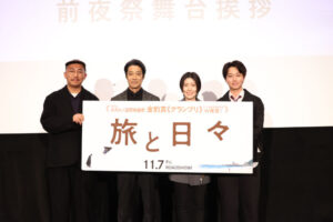 この度、『旅と日々』の公開を目前にTOHOシネマズ シャンテにて前夜祭舞台挨拶を行いました!ロカルノ、釜山、サン・セバスチャンをはじめ、各国映画祭を“旅”してきた本作がついに日本公開を迎えるにあたり、主演のシム・ウンギョン、共演の堤真一、髙田万作、そして三宅唱監督が登壇いたしました。