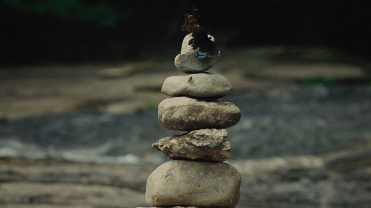 また、本作の舞台となったキャッツキル山地でのシーンを捉えた新場面写真を解禁。マンハッタンから車でおよそ2時間、480km以上のトレイルが整備され、豊かな自然が広がるこの地で、クリス、マット、サムの3人は2泊3日、1日13~14キロを歩くキャンプ旅行へ。川沿いの岩に転がるサムの表情、テントの横のタープの下でカードゲームをしているシーン、静かな湖畔でのひとときや積み上げられた石──刻々と表情を変える山々の光は、少女の内面の揺らぎと呼応するかのように捉えられ、物語に深い奥行きを添えている。また打って変わって、サムとガールフレンドが部屋でくつろぐ場面では、17歳の少女らしい一面も垣間見える。